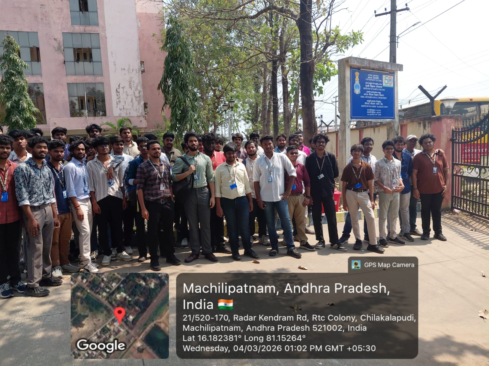 The Department of Internet of Things (IoT) organized an industrial visit for II-year students on 04-03-2026. The Industrial visit to the India Meteorological Department (IMD), Machilipatnam focused on real-time IoT applications in weather monitoring. Students observed how sensors are used for collecting atmospheric data such as temperature, humidity, and pressure. They learned about IoT-enabled systems like radar and radiosonde for data transmission and analysis. The visit highlighted the integration of IoT with cloud platforms for accurate weather forecasting. Students also understood the role of IoT in disaster prediction and early warning systems. The exposure helped them connect IoT concepts with real-world applications. Overall, the visit enhanced their practical knowledge and technical skills in IoT systems.