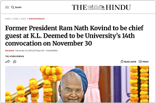 Former President Ram Nath Kovind to be chief guest at KLU's 14th convocation