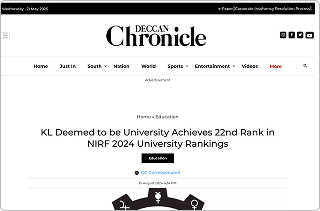 KL Deemed to be University Achieves 22nd Rank in NIRF 2024 University Rankings