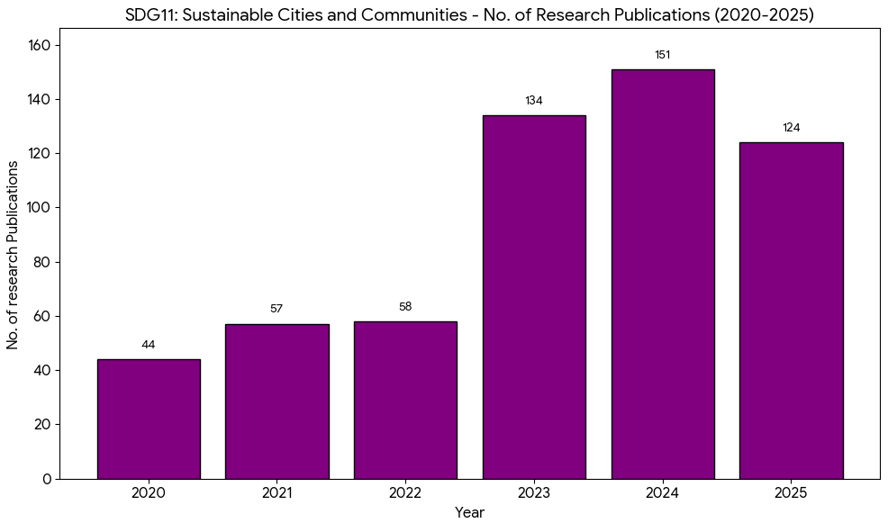 Additionally, KL University has contributed significantly to research under SDG-11, with a notable number of publications dedicated to Sustainable Cities and Communities.