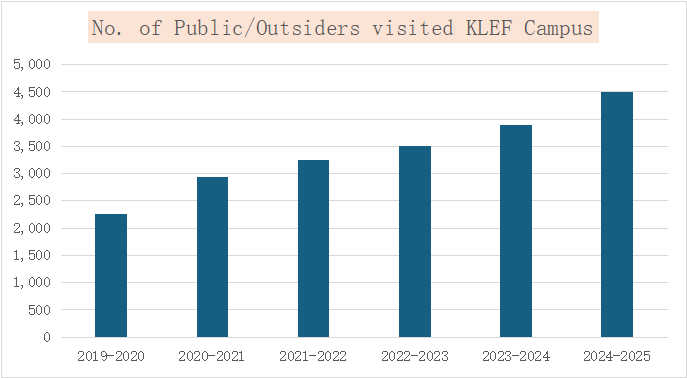 A considerable number of public visitors and outsiders visit the KLEF campus annually, making use of the open spaces, academic events and community facilities.